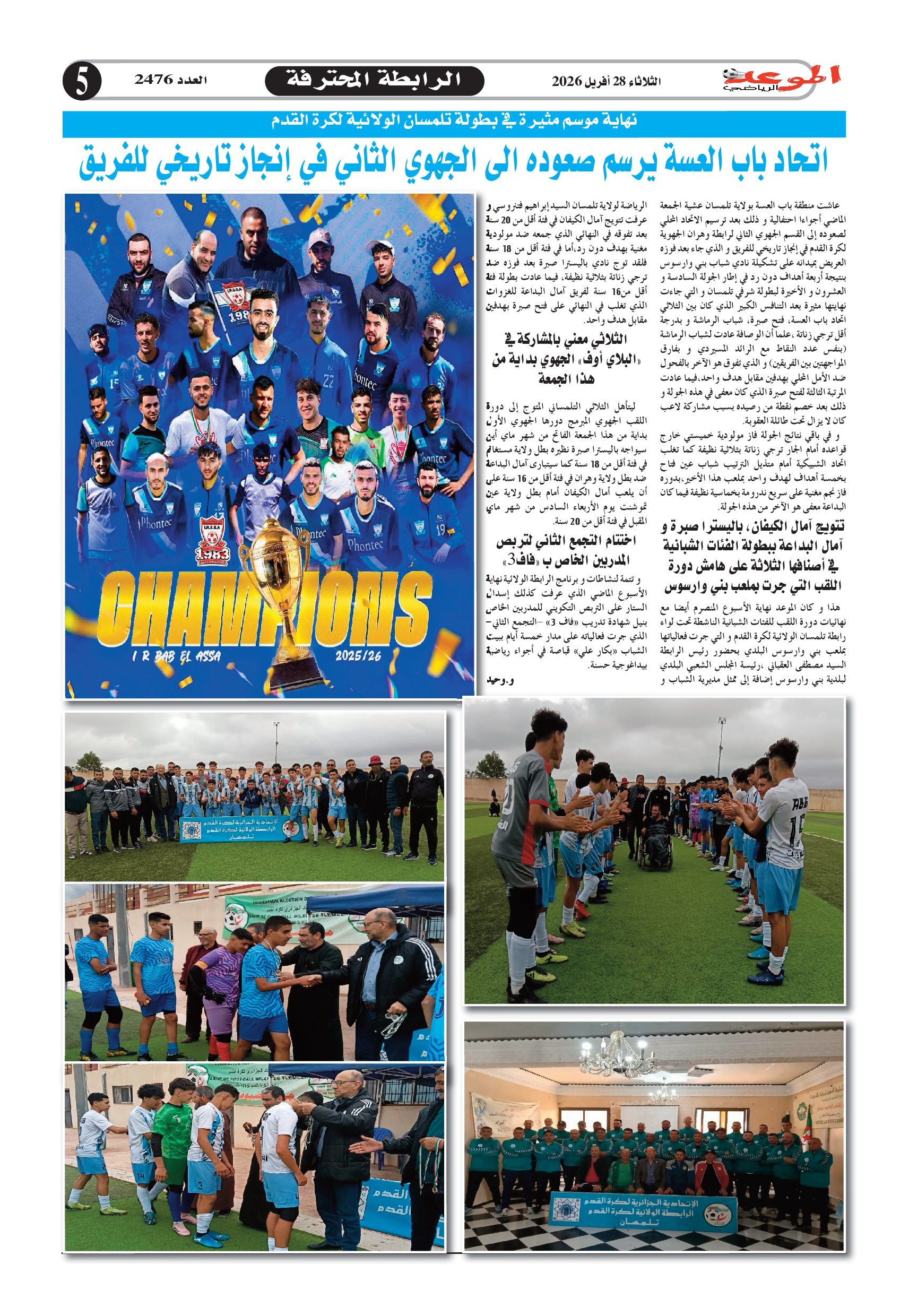 | publié le: 27 Avril 2026 à 20:00 | الرابطة تهنئ الفرق الأبطال في كافة الفئات لموسم 25-26 وتهنئ الحكمة الشابة وادفل لإدارتها الناجحة لنهائي كأس الجمهورية أقل من 20سنة برزانة واحترافية معهودة |