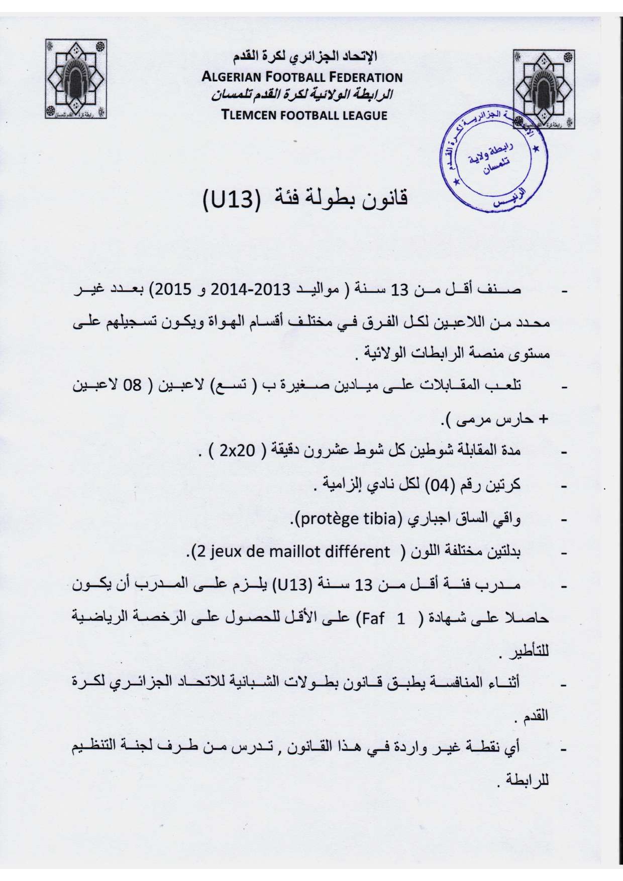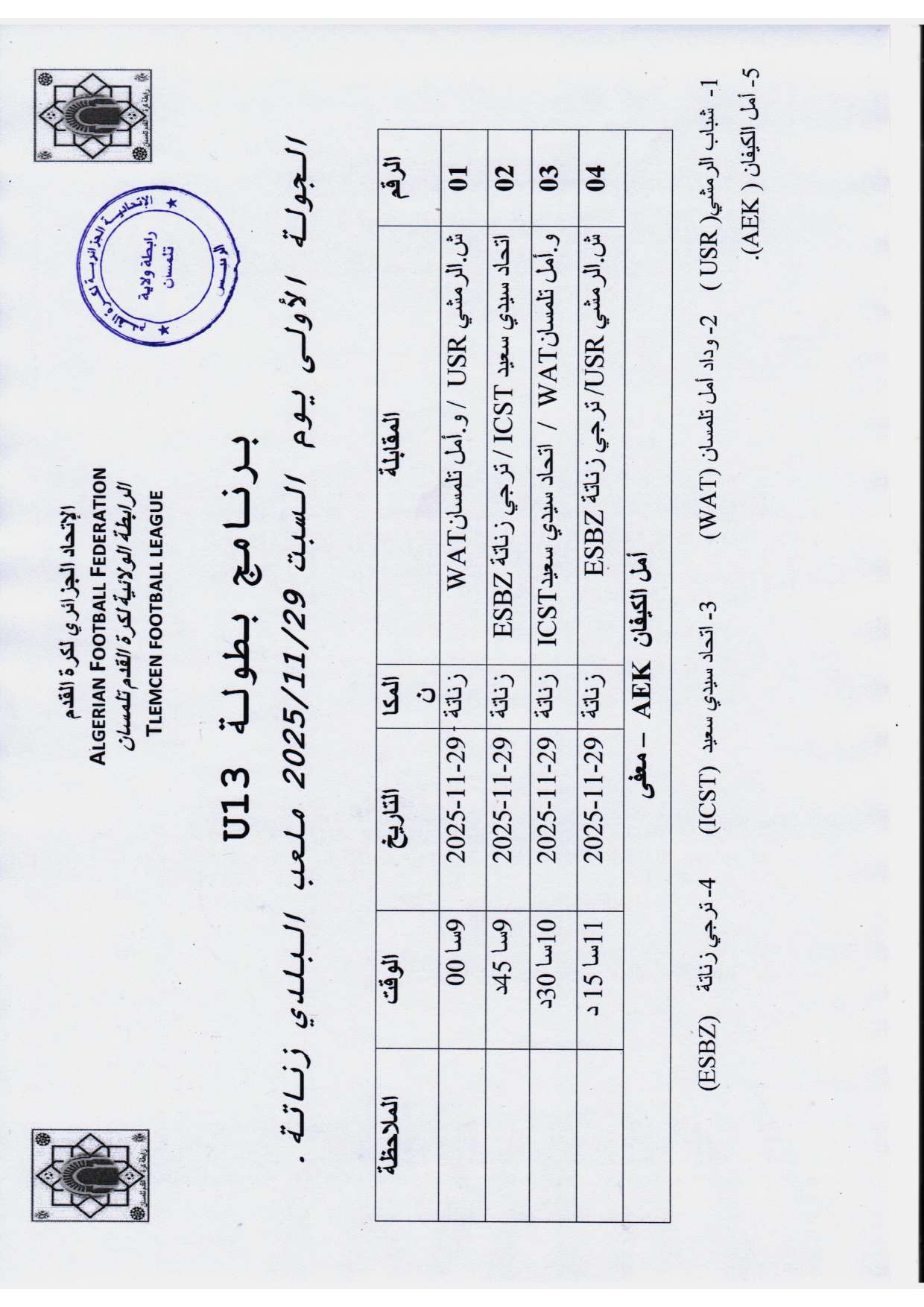 برنامج بطولة الشبان أقل من 13 سنة