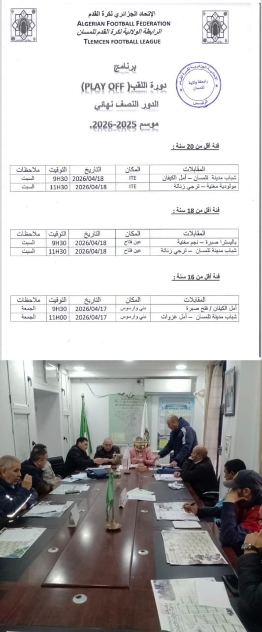 | publié le: 15-04-2026 à 18:00 | فعاليات ونتائج القرعة للدور-بلاي أوف- للشبان المؤهل للأدوار الولائية play-off |