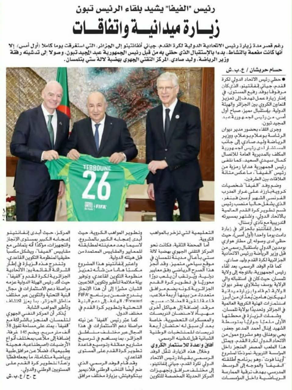| publié le: 13-04-2026 à 18:00 | مراسيم تدشين المركز التقني الجهوي لالا ستي -تلمسان- تحت اشراف السيد رئيس الفاف،معالي وزير الرياضة وبحضور رئيس الفيفا جياني أنفنتينو |